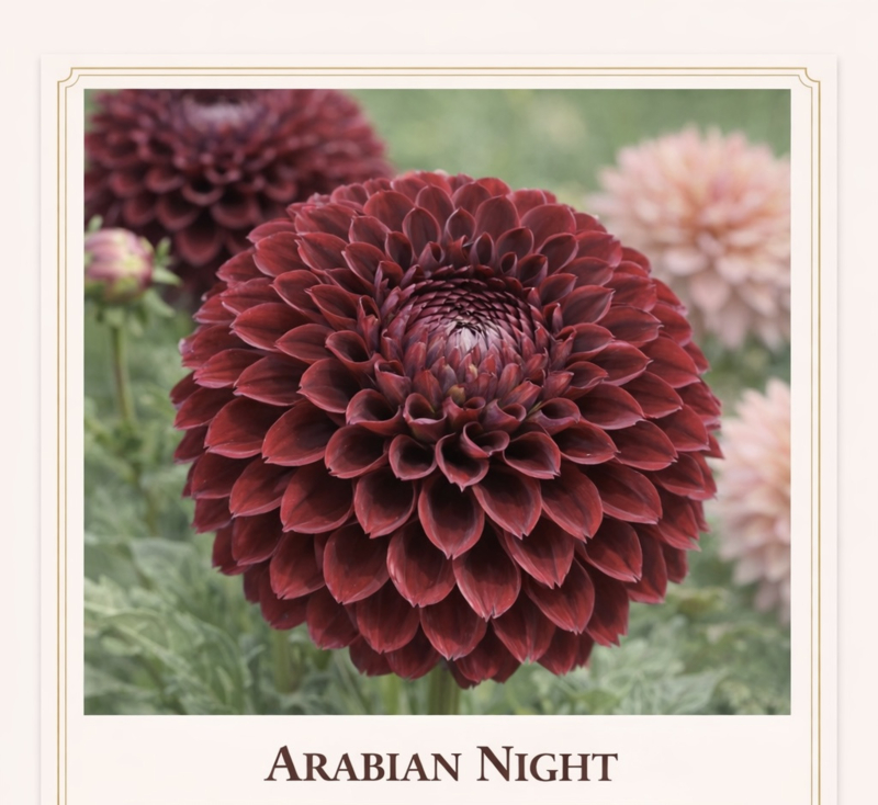 ARABIAN NIGHT dahlia-knollenDahlia Arabian Night is een echte sfeermaker in de tuin. De diep bordeauxrode tot bijna zwartrode bloemen hebben een fluweelzachte glans en geven elke border een luxe, mysterieuze uitstraling. Een klassieke favoriet voor tuinen é